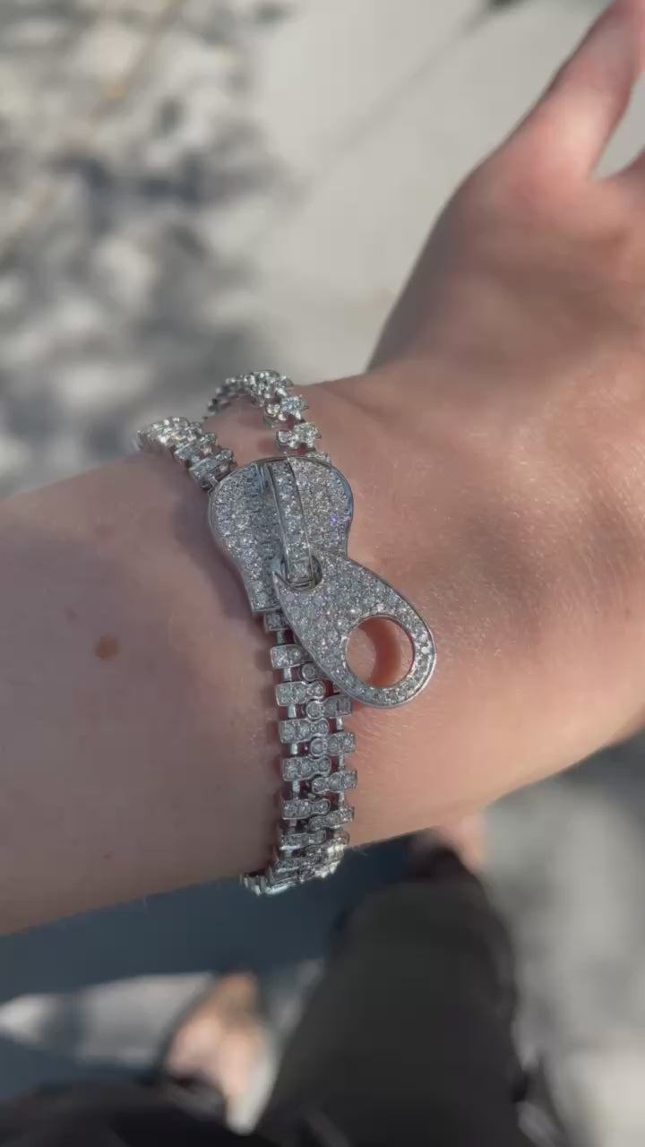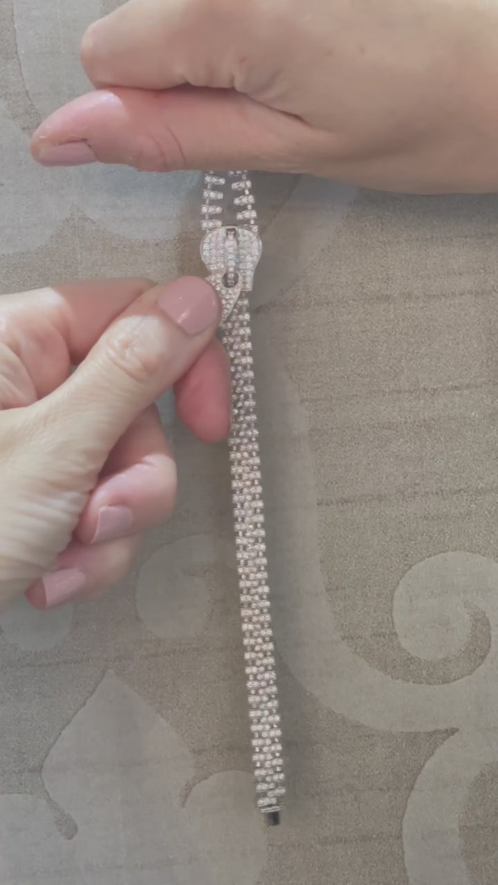 Unzip expectations with this extraordinary 18K White Gold Diamond Zipper Bracelet, featuring 3.98 carats of brilliant-cut diamonds. Designed with a fully functional zipper mechanism, this statement bracelet merges playful innovation with high-end elegance.