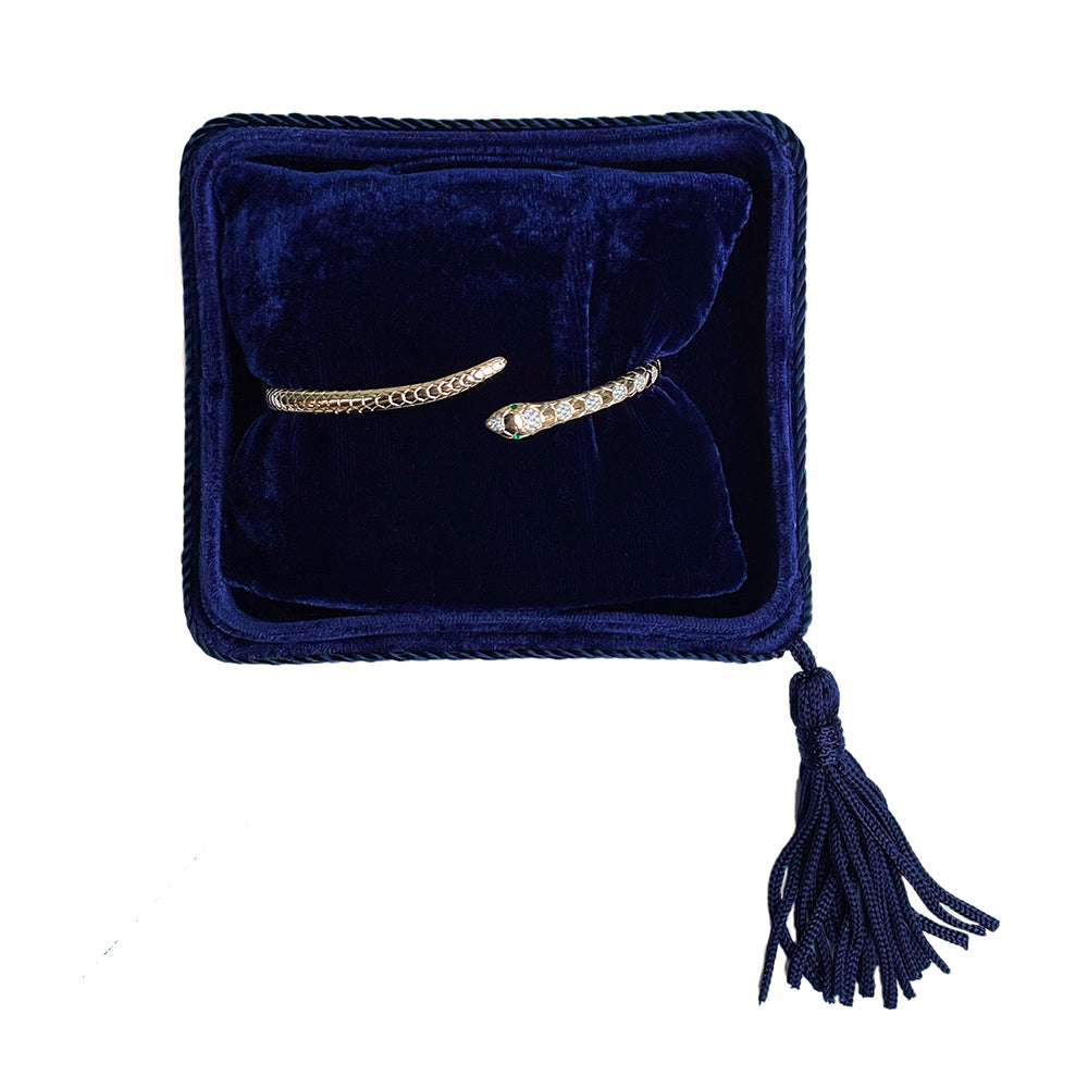 14K Yellow Gold Diamond & Emerald Snake Bangle