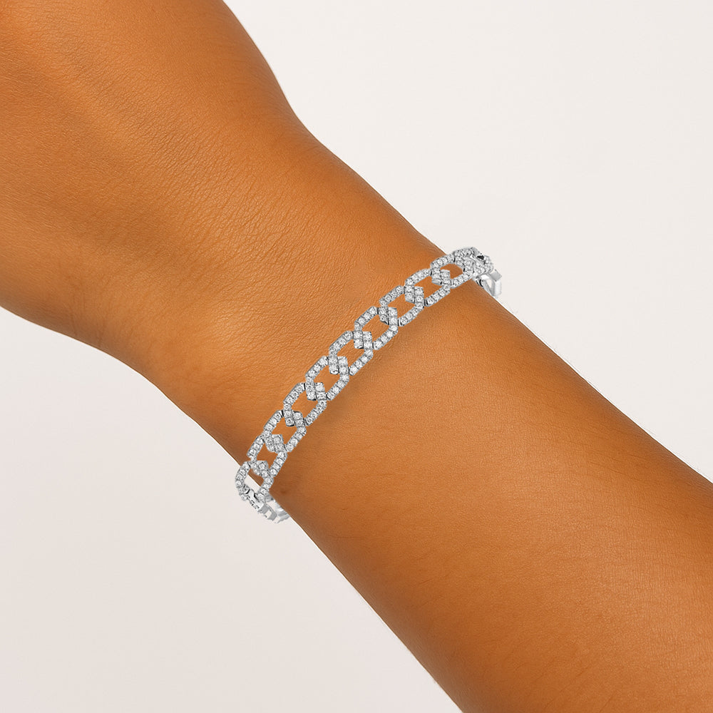 White Gold and Diamond Paperclip Link Boyfriend Bracelet with all Diamond Links