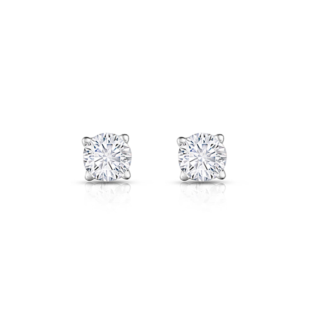 14K White Gold Round Brilliant Cut Diamond Stud Earrings, 0.30 TCW