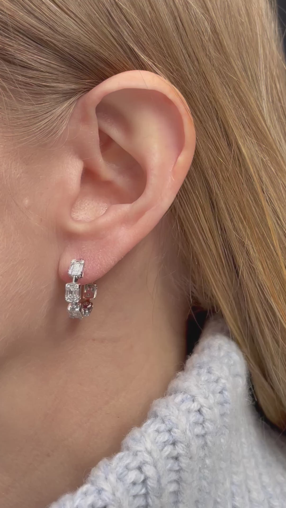 14K White Gold Illusion Baguette and Round Brilliant Diamond Hoop Earrings – 0.86 Carats