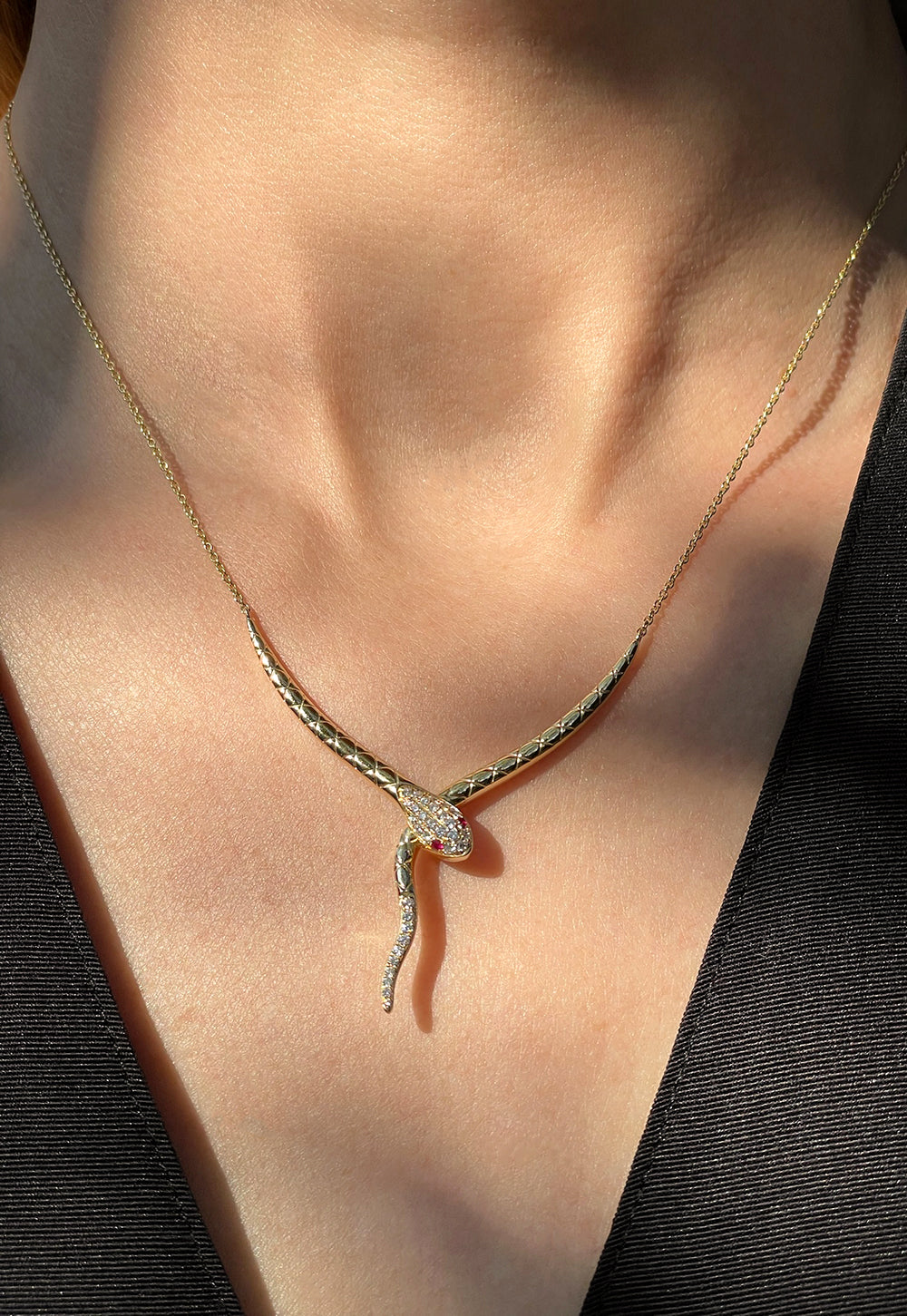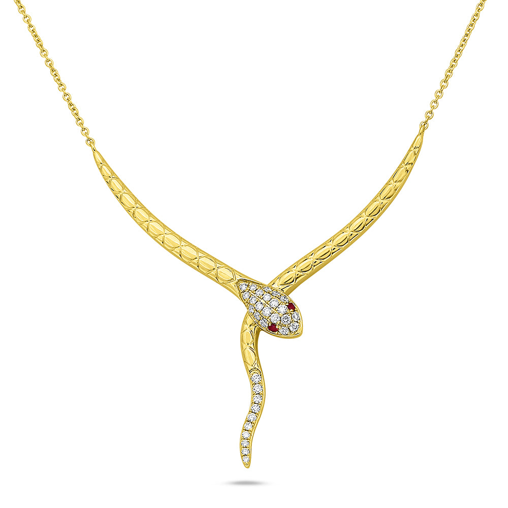 14K Yellow Gold Snake Necklace with Diamonds & Rubies
