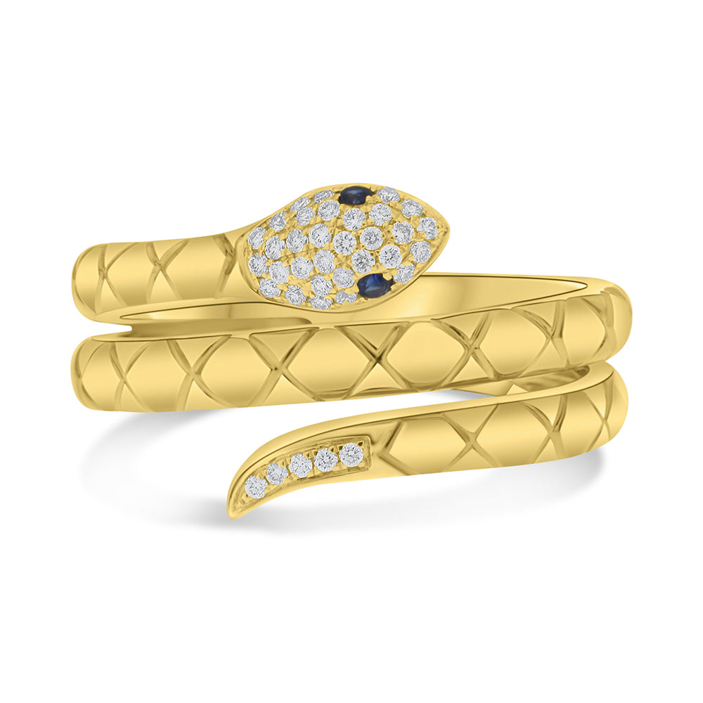 14K Yellow Gold Snake Wrap Ring with Diamonds & Sapphires
