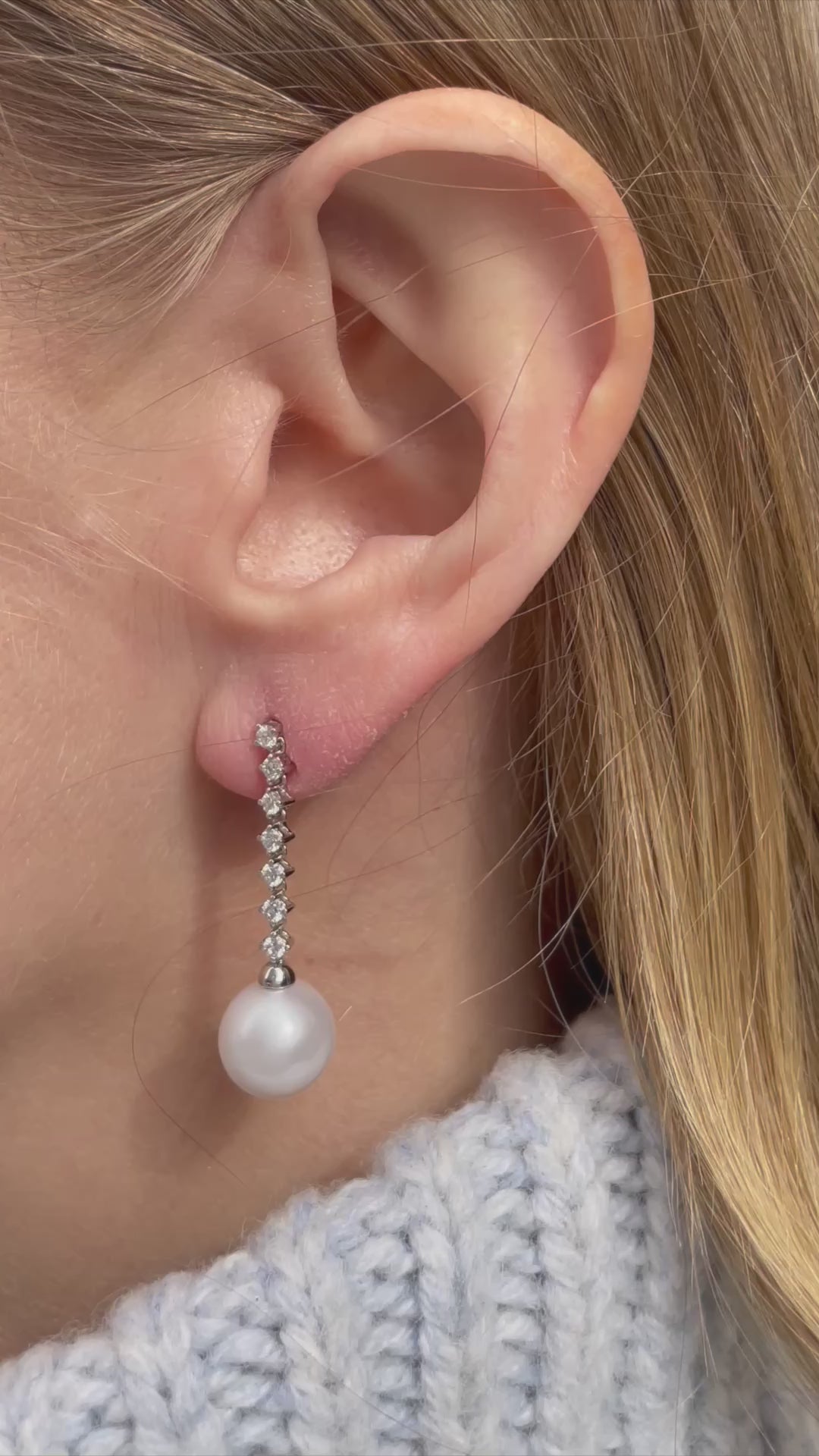 18K White Gold South Sea Pearl & Diamond Drop Earrings – 10-11mm Pearls, 0.42 Carats