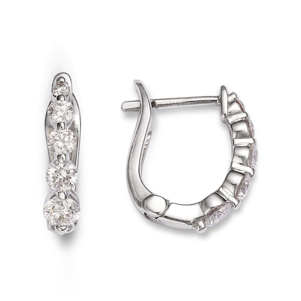 Elevate your everyday style with these Graduating 1-Prong Huggie Earrings, crafted in 14K White Gold and featuring 0.80 carats total weight of sparkling diamonds. Designed with a modern graduated silhouette, these huggies showcase diamonds that increase in size, creating a subtle yet eye-catching effect.