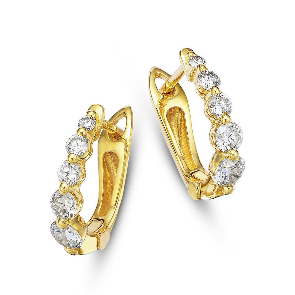 Elevate your everyday style with these Graduating 1-Prong Huggie Earrings, crafted in 14K Yellow Gold and featuring 0.80 carats total weight of sparkling diamonds. Designed with a modern graduated silhouette, these huggies showcase diamonds that increase in size, creating a subtle yet eye-catching effect.