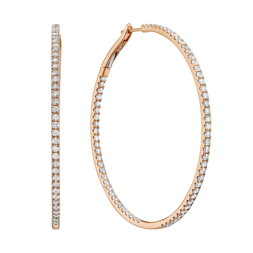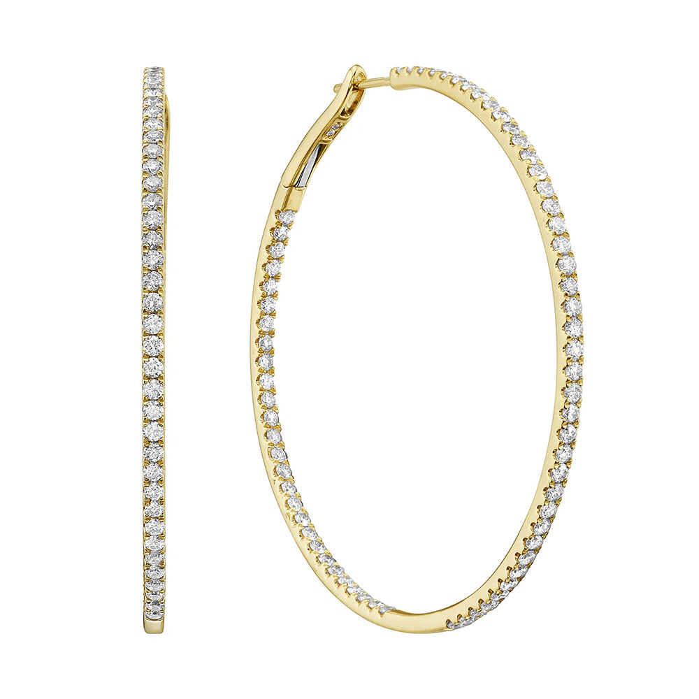 Timeless, versatile, and undeniably radiant, these 2.39 carat diamond hoop earrings are designed to elevate your everyday and shine at every occasion.
