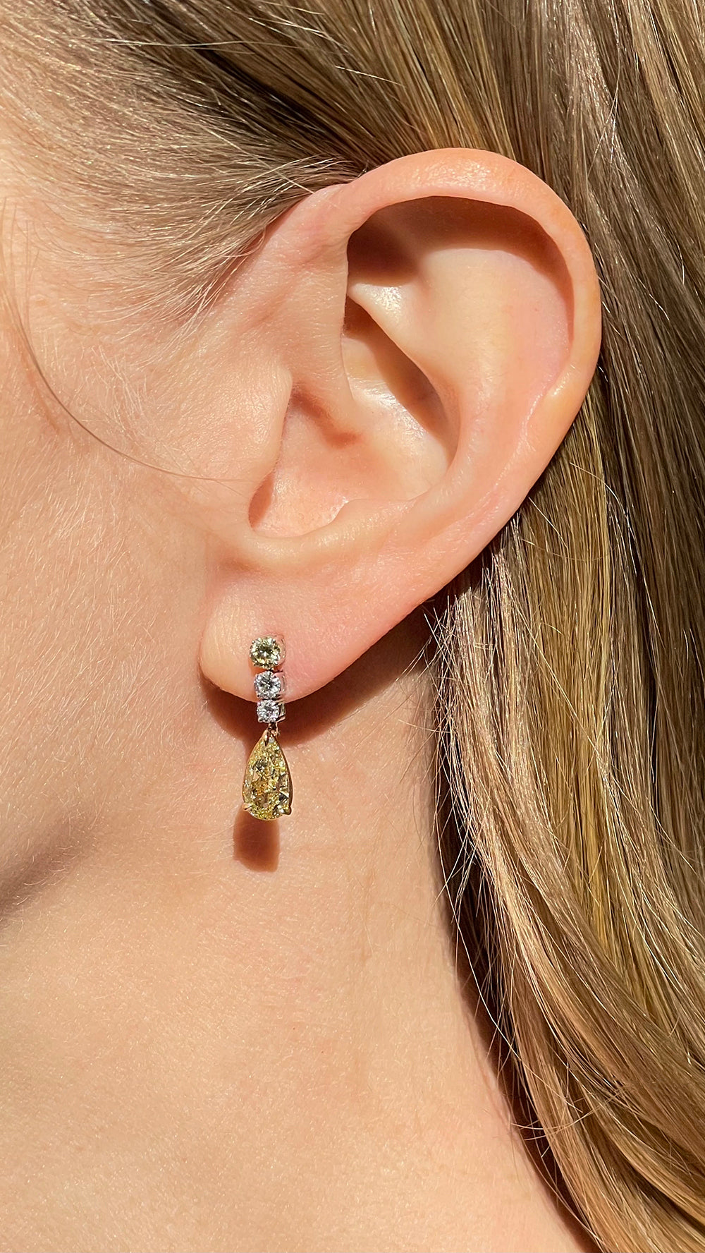 • Design: A cascading arrangement of white and yellow diamonds for maximum brilliance