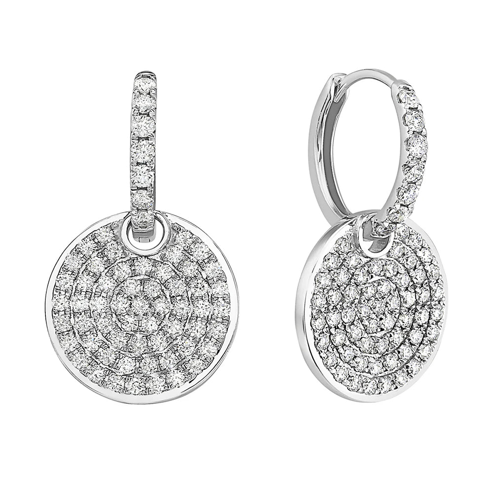 The shimmering concentric diamond pattern creates a captivating play of light, making these earrings an eye-catching accessory for both day and evening wear. Choose between 14K yellow or white gold to perfectly complement your style.