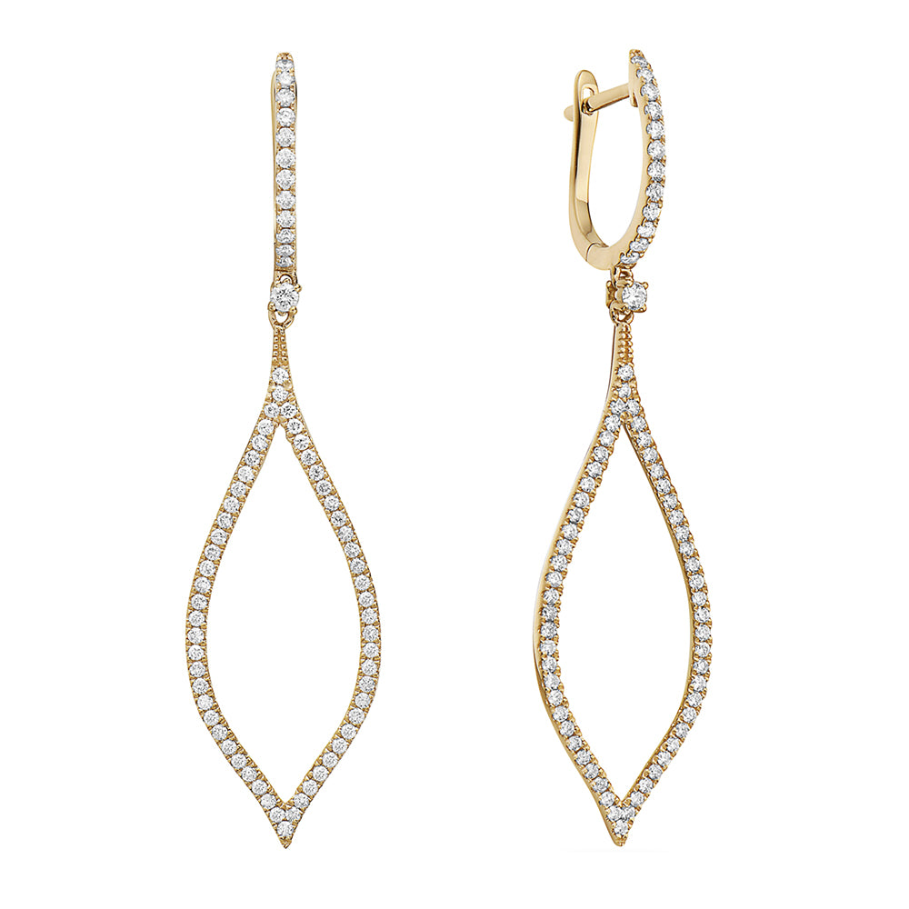 Exude elegance and sophistication with these 14K Yellow Gold Marquise Diamond Drop Earrings, featuring a diamond omega bar that gracefully descends into a dazzling marquise-shaped diamond outline. The marquise shape, historically associated with royalty and opulence, was first introduced by King Louis XIV, making this design a true symbol of prestige and luxury.